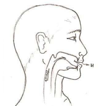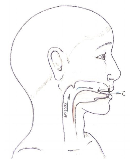 Звук идёт из зубов. Губы растягиваются в стороны. Язык касается низа зубов. Тяжёлый и мягкий звук.